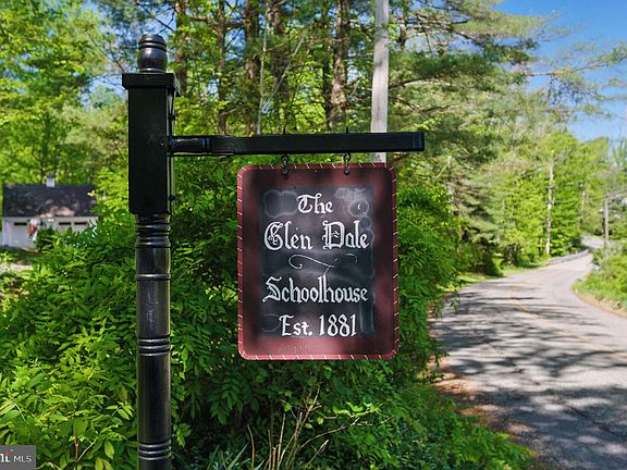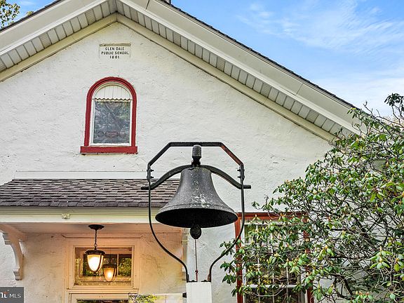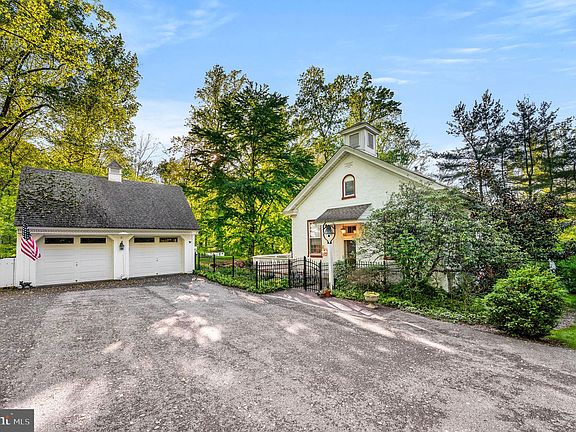 Welcome to 40 Indian Run Road, a truly one-of-a-kind property nestled in the heart of scenic Glenmoore. This beautifully restored home once served as a 19th-Century one-room schoolhouse named The Glen Dale Public School. Following the 1836 Free School Act, public schoolhouses like Glen Dale School served Wallace Township for over a century. From the moment you arrive down the long, welcoming private drive, you’ll be enamored by the home’s history and charm. The original white schoolhouse façade, complete with a picturesque arched window above the covered front porch, immediately draws you in. Just above the window, the original 1881 Glen Dale Public School plaque still hangs, a timeless tribute to the home's storied past. The quaint landscaping, accented by the original school bell, adds to the one-of-a-kind character of this historic gem. Enter into the home to find a well-appointed kitchen all set beneath exposed wood beams, a full bathroom off to the side, and the main living space. The main living space features a dramatic two-story original stone fireplace (now serving as a wood stove insert) flanked by the original chalkboards used in the schoolhouse! Take in the character of this space with the exposed hand-hewn beams, leaded glass window, and vaulted ceilings. A spacious main suite was added on to the main living area, complete with vaulted ceilings, a gas fireplace, a walk-in closet, and a luxurious en-suite bathroom with a jetted tub, stall shower, and two separate vanities. Two additional bedrooms are located upstairs along with a shared bathroom that includes a built-in sauna. A cozy den and laundry are located on the lower level, providing additional functional space. A spacious back deck overlooks the 2.65 acres of wooded land that backs up to Indian Run and the Wallace Twp.Trail. A stone path leads through the scenic backyard, offering a peaceful place to unwind. The detached two-car garage includes a full attic for extra storage or potential additional living space. Whether you’re drawn to its rare historical charm or its blend of past and present, this home offers a living experience that is as distinctive as it is comfortable. With a convenient walk to Springton Manor Country Park and endless trails and farms, you’ll enjoy peaceful countryside living with nature right at your doorstep. Schedule your appointment to see this unique property for yourself.