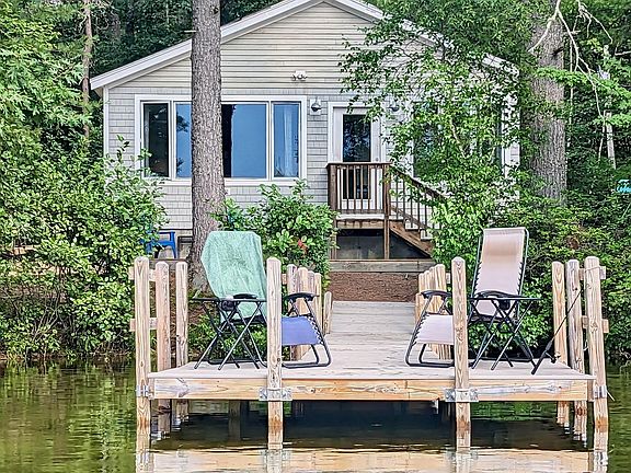 But the outdoors is the main event! A deck faces the water, encouraging hours of lounging. A few steps from there is the sunny dock, big enough for lounging, swimming, turtle-watching, loon-calling, and picnicking, in addition to securing the fleet of kayaks, aquatic unicorns, and other craft that converge at a camp. The large lot encompasses a sunny yard, some woods, and plentiful parking. A camp on one side has been used lightly; and the neighbors on the other side include pine trees and lady slippers. A newly rebuilt shed with lighting and electric service stands ready to hold a summer's worth of toys, and maybe an adventurous young camper with a sleeping bag!