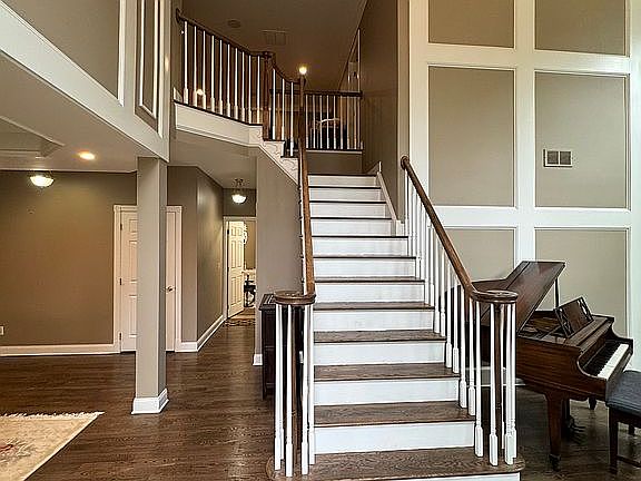 The first floor showcases open concept living room and dining room with thoughtful craftsmanship throughout. The living room features beamed cathedral ceilings, a motorized crystal chandelier, and an impressive L-shaped staircase. The dining room has a tray ceiling with newly installed recessed lighting. The den offers a Heat-N-Glo gas fireplace with marble surround, vaulted ceiling, sliders to the expanded Trex deck, ceiling fan, and 55” TV with soundbar. The newly renovated kitchen includes gorgeous Taj Mahal quartzite countertop and backsplash, upgraded GE Monogram cooking appliances, LG French Door refrigerator, KitchenAid three-drawer dishwasher, a touchless motion faucet, cabinetry with pull-outs and Lazy Susan, and a California Closet organized pantry. The spacious first-floor primary suite features vaulted ceilings, a large walk-in California Closet, and a spa-inspired en-suite bathroom fully redone in 2024. The nearby laundry room includes a pedestal washer, natural gas dryer, and auxiliary sink for added convenience. Outdoors, enjoy the expanded Trex deck with natural gas Weber Genesis BBQ, privacy fencing, and peaceful wooded views.