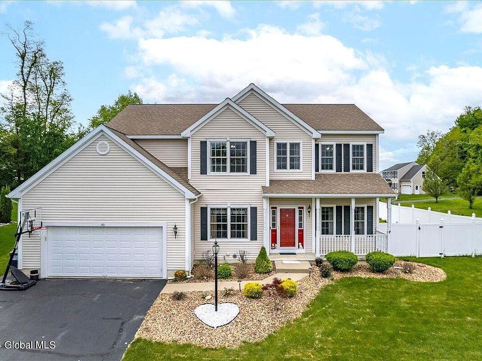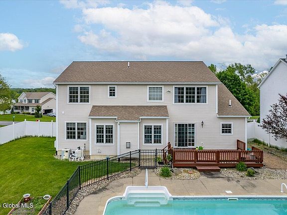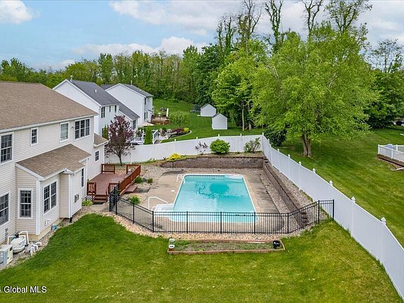 EVERYTHING! Stunning 2800 Sq Ft. single-family well maintained home with loads of upgrades: oversized 4-bedrooms; separate living, formal dining w/French doors and office w/cabinets-desks; Open kitchen with impressive 42'' cherry cabinetry; Spacious family-room overlooking large in-ground pool and landscaped backyard; Recessed smart-LED lighting in huge master bedroom, kitchen & family room (w/5-recessed speakers); Gleaming oak-stained hardwood floors - 1st level, stairs, and hall upstairs; Finished basement w/tons of storage and unfinished area with built-in shelving; Professionally landscaped corner lot w/privacy fence. Award-winning EGCSD. Beautiful neighborhood! Adjacent to I-90 with <1 mile to Pheasant Hollow Golf-Course, Goff school, and Columbia turnpike. Nothing to do but move in.
