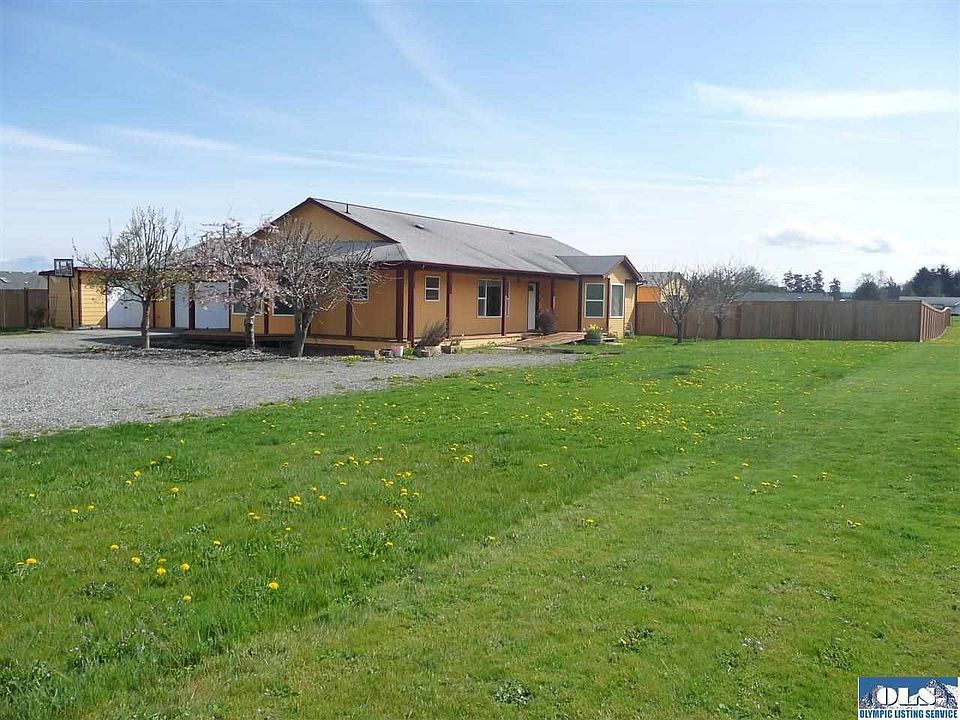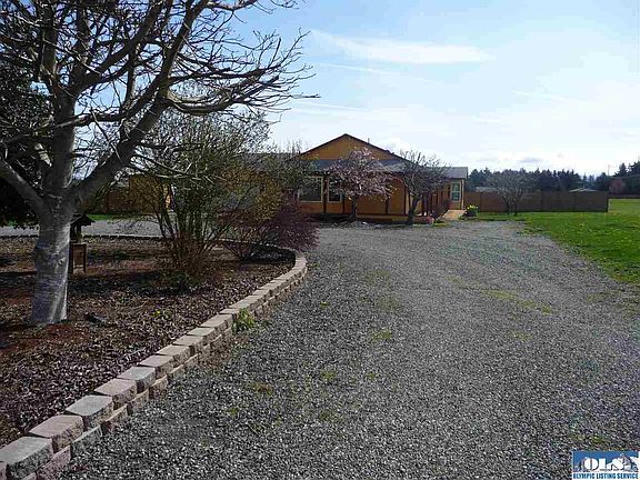 Location is always the key, and this home, a mile from town, is perfectly located, far enough away from Old Olympic Highway and close enough to Sequim. Home has 3 bedrooms, 2 full baths, 1/2 bath in large laundry room complete with great shelving that stays with home, a kitchen perfect for entertaining, with a bar for people hoping for treats and place for a large dining room table. Living room is good size with nice southern facing windows to capture the mountains. A small gust house has a 3/4 bath.