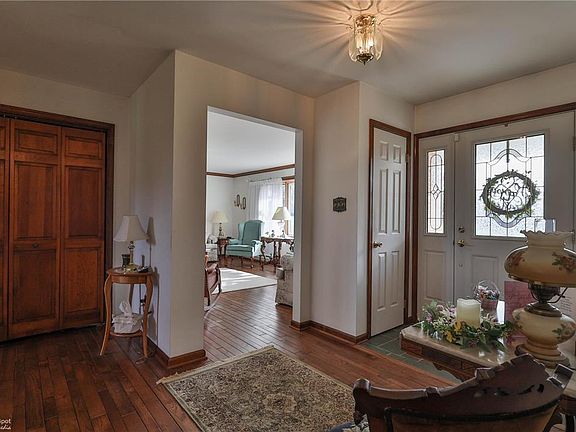 This well maintained three bedroom,two and a half bath ranch home is nestled ona cleared acre lot with a three car detached garage.The formal living room offers plenty of natural light,crown molding and a wood burning fireplace.The remodeled kitchen offers granite countertops,tile backsplash,undermountcabinet lighting and a breakfast nook that overlooks the backyard.the spacious family room will accommodate the entire family w/ plenty of storage.Enjoy dinner gatherings in the dining room that leads to the three season sunroom w/ ceiling fan and electric heater.Lower level offers a large recreation room with a pellet stove and pool table,laundry room with built-in cabinets and countertop for folding laundry and plenty of storage space.Many updates include hardwood floors throughout the main level,remodeled baths, whole house generator and much more! Conveniently located near major roads,schools and other local amenities.