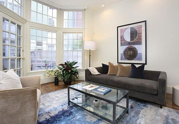 A sophisticated three-bedroom, two full bath residence with soaring high ceilings, exquisite custom millwork, and private landscaped patio located on Historic Beacon Hill. This home features a chef's kitchen with Subzero refrigerator, Thermador oven, Caldera cooktop, and a Broan professional overhead vent. Enjoy an open living room with built-in bookcases on either side of the fireplace and a magnificent double bay window. The dining area lends itself to small or large gatherings. Step into a sumptuous master bedroom suite with two walk-in closets, a fabulous spa bathroom with honed Ming green stone floors, double vanity, and a beautiful enclosed glass shower. The second bedroom is large with excellent closet space and views of a hidden garden. The second full bath offers a great size vanity, subway tile bath, and shower, plus beautiful marble floors. The third bedroom is perfect for guests with a queen-size bed or a home office. Separate laundry with pantry closet and extra storage.