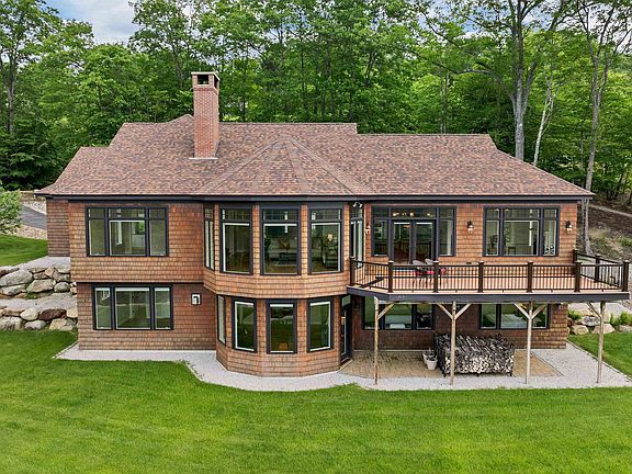 Stunning luxury mountain home with direct views to Attitash Ski Area and the Stanton mountain range. Walk in to a wall of windows with a west facing view for extraordinary sunsets off the deck on over 5 acres of land. Fall foliage is simply incredible and you will truly enjoy the winter months in front of your stone, wood burning fireplace with a raised granite hearth, or one of two gas fireplaces in the sunroom and lower level. The large chef's kitchen has beautiful wood cabinetry, black granite counters, a Wolf gas range and stainless appliances plus a breakfast bar next to the dining area and deck for ease of entertaining. The first floor primary bedroom makes one floor living possible and includes a walk-in closet and bath with a jetted tub, zero entry shower and double vanity with storage. You will love the tile floors throughout the lower level and the family game room with the walk-out to the back lawn. The second bedroom has a private bath and there are two additional bedrooms on this floor, all facing the view, and a shared hall bath. An office is located at the base of the stairs; a great work from home location. Efficiently heated with radiant heat in three zones on the lower level and a two zone forced air system with central a/c on the main level. There is a whole house generator and a three car garage for all your toys. An incredible Doc Gilmore built home in a great location near skiing, hiking, shopping and so much more to do in the Mount Washington Valley.