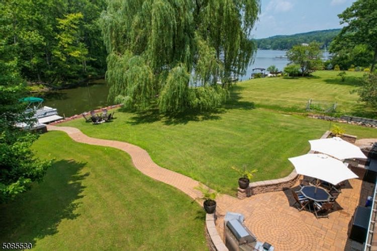 Imagine Waking up to this view in Private Pines Lake! Stunning open flr plan"Wall of Windows"Overlooking Lush Property w Paver Patio &Paver Walkway leading to Private Dock waiting to Launch your Boat! This open flr plan is the Heart of this Home;Inviting Great Rm w cathedral ceiling, Kitchen; Chef's Delight spacious breakfast bar, top of the line S S Fisher Patel appl dining area and custom wet bar adjacent to an inviting den w gas f p. Master bedroom Suite encompasses the whole floor.Master bath creatively designed radiant heated flrs, soaking tub, oversized tiled shower a private den sitting area Vermont insert wood burning f p, wood beam ceiling adjacent to office or bedroom&Gym or bedrm. 2nd fl;3 bedrms, full bath.Private Pines Lake: swimming, boating, fishing, tennis so much more! You will love living here!