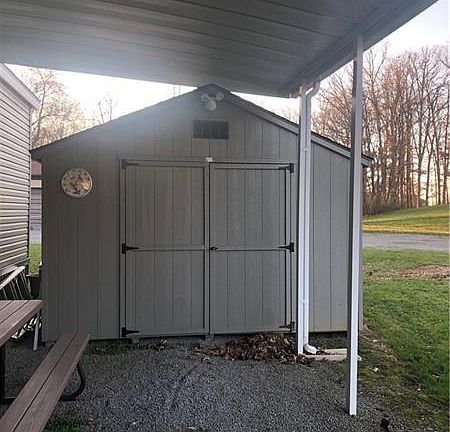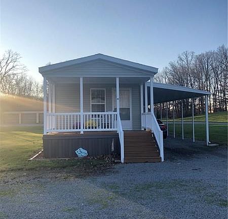 This 2018 Dutch Diamond II mobile home boasts an open floor plan with 2 bedrooms and 2 fulls baths! Features an eat-in kitchen with island and hickory cabinets. This home sits on a level corner lot with views of the wood line where deer and other wildlife are often seen. Master bath features large walk-in tile shower. Keep you car out of the unpredictable PA weather under the attached carport. Large shed gives you extra room for storage or a place to tinker with the built in work bench. Located in a quiet setting, but only a short drive from all of Chippewa.