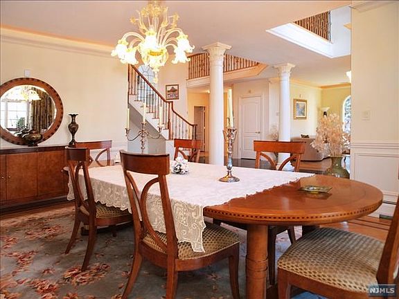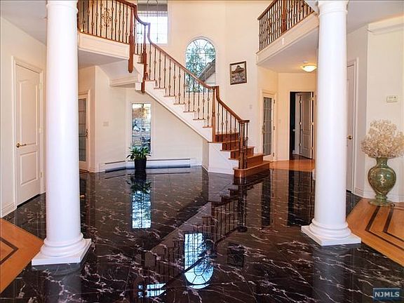 Stunning custom built home no expense spared! Open and spacious floor plan approx 5000sf. Grand marble two story entry foyer w/ bridal staircase, custom wrought iron railings leading to wrap around balcony,custom moldings & wall sconces, living rm w/diagonal oak fls & walnut border,crown molding w/accent lighting,lg formal dining rm,crown molding w/accent lighting,butler's pantry & storage pantry,lg kitchen w/ Viking ref,oven,cook top,Miele d/w,warming drawer & range hood,micro,large granite island & counters, sep dining area w/fpl,french drs to patio, dramatic two story family room w/coffered ceiling,fpl,wet bar w/granite counter,french drs to patio w/ European flair,spectacular waterfalls & bbq area. Lg 1st fl br w/full bath & French dr/patio,marble guest bth. Huge master suite, tray ceiling,sitting area w/FPl,2 custom walk-in clsts,lg marble master bath,double sinks,whirlpool tub,sep shower. New 2010 8 zone h/w gas bb heat,3 zone c/a/c,home built in 2004, short walk to nyc trans