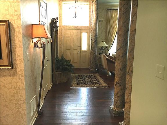 Beautiful, Custom Expanded Monaco with Stately Brick Front features a den/library/office off the Living Room. This lovely 2 bedroom 2 car garage home has spacious open plan. Elegant living room and dining room area, The elaborate decorative entry columns adds to the distinction and character of this home. These are decorative and not supportive. Wood floors throughout and Custom Carpet in Bedrooms. Well appointed chef gourmet kitchen with granite counters, decorative backsplash, stainless steel appliances and Bosch stainless steel Refrigerator. Master Bedroom has French doors. Master Bathroom has Double Sink Vanity, Soaking Tub and Shower. Custom Shower in 2nd Guest Bedroom. Crown Molding galore, Decorator Window Treatments recess lights and ceiling fans. Upgraded Washer and Dryer AND The homeowner has recently replaced the Furnace and Central A/C System. Regency a Premier 55+ is a Toll Brothers Community. Resort lifestyle