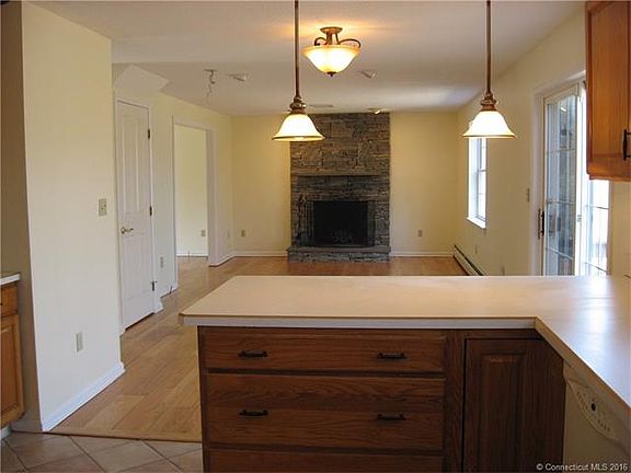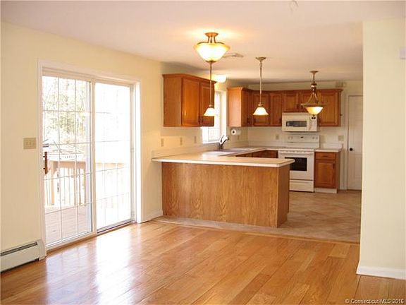 A sunny, bright home just waiting to be loved again!!! This home comes with a Buyer Choice Home Warranty plan, so your worries will be gone!!! Wonderful private, property on the end of a quiet neighborhood cul-de-sac, backing to woods & open fields. Light filled & bright with a spacious, open floor plan! Great kitchen space opens to a large Great Room with stunning floor to ceiling, artisan stone fireplace. Just refinished gleaming Hardwood floors thru-out the main level & tile flooring in the kitchen. French Sliders open to just stained deck & private backyard. Brand new kitchen oven range & dishwasher in the kitchen. The interior walls have all been freshly painted. There is an ADDITIONAL approx 700 sq. ft. of great living space in the finished lower level featuring brand new carpeting, a bar space and game area. This bonus space has access to the back yard and great natural lighting from multiple windows. (This sq. footage is NOT INCLUDED in the posted sq footage) This home also offers 4 Large & spacious bedrooms, the master has a very large walk in closet & large bath and features all newer composite Wood Flooring on the upper level. The back & side will be brought back to beauty when the topsoil and seeding are completed. Conven. located to parks, open space & the highway, yet in a quiet neighborhood oasis. Property abuts farmland and town owned space. This lovely home is just waiting for the right buyers to add their love & special touches to make it their own!