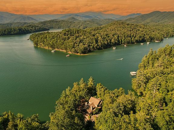 Introducing Lavender Lodge – a masterpiece of bespoke architecture nestled on the serene shores of Lake Fontana. The sprawling 3+ acre gentle lot with 500+ feet of lake frontage allows you to wade into a world of endless watercolor sunsets. Each of the three fireplaces - two inside and one on the covered porch - is a unique work of art in itself. The kitchen is a melody of culinary inspiration, harmonizing top-tier appliances with rustic charm. Enter the upper level bedroom suite and open French doors that lead to a balcony. The lower level offers an inviting hot tub, a wet bar and a rec room. The home has a proven vacation rental history, allowing you to subset the cost of your mountain escape. Sold fully furnished and with the capacity to accommodate up to 10 dreamers, Lavender Lodge is ready to create new stories. It's a place where mornings start with the aroma of freshly brewed coffee and evenings wind down with the clinking of glasses, a place where every nook is an invitation to be present. Come, be part of the story at Lavender Lodge. Your symphony of lakefront living begins here.