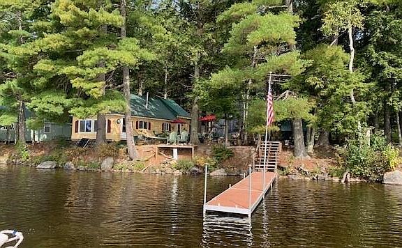 Quaint Lake House Cottage on South Branch Lake which is celebrated for it's premier bass fishing., Grandfathered and nestled near the water's edge make this a rare gem. The cabin's open floor plan features a windowed front wall that presents uninterrupted, dynamic views of the lake. From breathtaking sunsets to serene moonlit nights and lively water life scenes, every day offers a different experience. The expansive patio boasts over 1,000 laid bricks, serving as the stage for a custom-made fire ring. Complementing this setup are the handcrafted Adirondack-style chairs - perfect for evening gatherings, stargazing, or cozying up by the fire with a book. For cooler weather you can be warm & cozy by the wood stove and propane heater which have enabled the current owner to enjoy year-round stays.