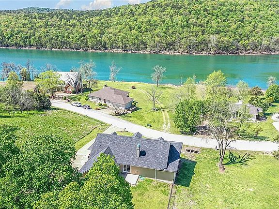 Enjoy amazing Table Rock Lake views at this beautifully remodeled custom home. Easy access from the garage, wrap-around front porch, or fabulous sunroom. Offers spacious living areas with primary suite, second bedroom/bath, utility room, half bath all located on main floor. Plus 2 bedrooms/2 baths upstairs with stunning walkway overlooking the living room and more views of the Lake. The large basement currently holds a sizeable storm shelter, food storage and plenty of room for a workshop, game room or craft area, with easy access to garden space under front porch. Some recent upgrades: HVAC, bathroom fixtures (primary bath walk in shower), quartz countertops, porcelain tile, LVP flooring, carpet, wood burning fireplace insert & surround, painting inside/out, refinished woodwork, new hardware, solid wood doors, backyard fencing, roof, whole home generator, water softener and appliances. This incredible home is like new and waiting for you, just a short distance from activities, pool, park, golf and more!