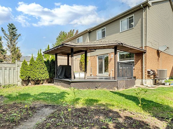 to this stunning freehold all-brick end-unit townhome, offering style, space, and convenience in one of Bowmanvilles most sought-after family neighbourhoods. Thoughtfully maintained, this home is perfectly suited for first-time buyers or those looking to downsize. Featuring 3+1 bedrooms, 3 bathrooms, and a fully finished basement, it offers the perfect balance of comfort and functionality for modern family living. The main floor boasts a bright and spacious living & dining area with large windows, filling the home with natural light perfect for family meals and gatherings and a walkout to a huge deck overlooking green space. The generous kitchen with breakfast area provides plenty of room for your family. Upstairs, the primary bedroom impresses with a skylight, walk-in closet, and a private 4-piece ensuite. Two additional bedrooms are well-sized with ample closet space and large windows, ideal for families. The finished basement is a true highlight, offering a cozy recreation room with pot lights and an additional spacious bedroom with a window for brightness and safety. Outside, the fully fenced backyard delivers privacy and space perfect for entertaining, relaxing, or barbecuing. The private driveway accommodates two cars plus one in the garage. This ideal location is within walking distance of French, Montessori, public, and Catholic schools, as well as beautiful parks and trails. Just minutes from downtown Bowmanville, the future South Bowmanville Rec Centre, Clarington Fields, shopping, restaurants, and all major amenities. Five minute drive to Highway 401 and walk to public transit makes commuting a breeze. Nearby, you'll also find healthcare, places of worship, grocery stores (Canadian & ethnic), banks,and more. This family-friendly townhome blends style, comfort, and convenience make this your home today!
