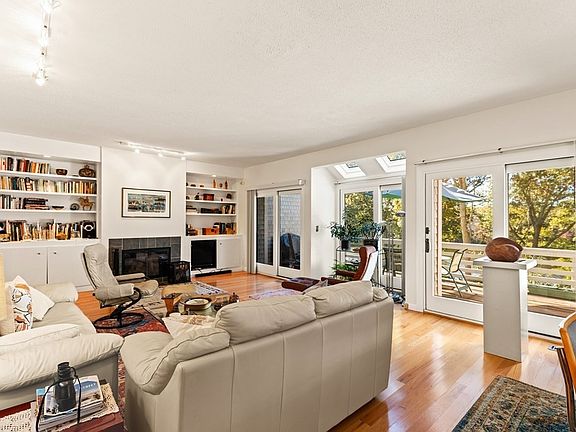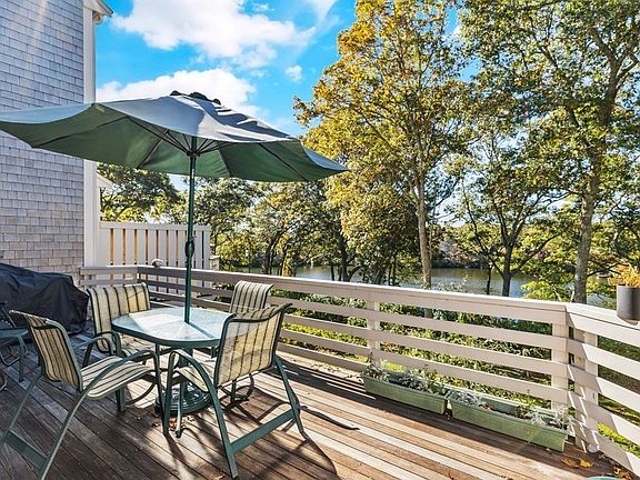 Exceptional townhouse in much sought-after Treetops in Quissett. This home has water views of Oyster Pond from 3 levels . The main floor has a lovely foyer, large living room with built in bookcases, fireplace and dining area that looks out on lovely views with a deck. The kitchen has a gas stove and a great sitting area. The primary bedroom has a fireplace, large tiled bath with jacuzzi. Another bedroom with a full bath also on this level. The lower level features a large family room with walk out sliders and a covered deck with pond views. This level is perfect for guests, home office and has a full bath. It also has a workshop/hobby room and ample storage in a cedar closet. Direct access to an attached one car garage. Amenities include a pool, tennis courts, clubhouse and a community dock. Home is on a corner lot with extra windows and a garden area. This area is cl Close to Woods Hole and Falmouth village.
