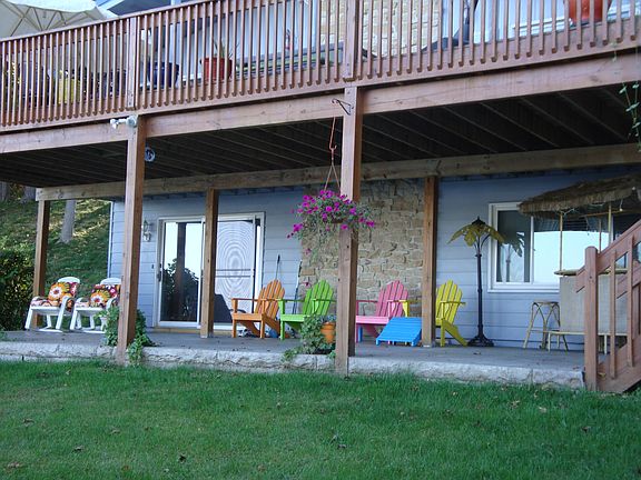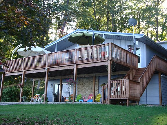 Spacious 4 bedroom, 3 bath home with many recent updates AND 63' of frontage on Lake James, with beautiful northerly views across James AND Snow! Perfect for enjoying the lake fully. The living and dining rooms have large sliders facing the lake, and walk out to over 800 sq.ft. of deck. There's a wood burning fireplace between the living and dining rooms. The kitchen even has lake views through the dining area. There are 3 bedrooms and 2 baths up and the full finished basement has a huge family room with another fireplace, a lakeside bedroom, large mudroom area, big den that can be used as 5th bedroom if needed and another full bath! Walk out the large sliders to a stamped concrete, covered patio and continue across the spacious front yard to your pier. There's an oversized 3 car, detached garage for vehicles and water toys. Enjoy the private boat launch and pavilion that Lake James Estates offers. That's over 2,800 sq.ft. of living space with large garage and lakefront on Lake James!