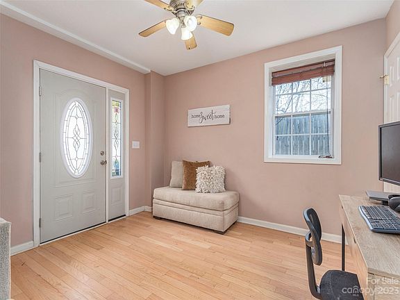 This charming two story house is perfectly placed with a level front yard and a private wooden fenced in backyard. Enjoy a cup of coffee, tea or wine on the front deck perched on the second story. Three bedrooms, two bathrooms and a laundry reside upstairs with new carpet leaving the main lower level floor plan the heart of the home. Granite tile countertops and a plethora of cabinets in the kitchen with a built in desk or coffee bar area make it a functional and practical space. The location is convenient both to the west Asheville and downtown Asheville restaurants, breweries and entertainment. Cable/satellite internet options.