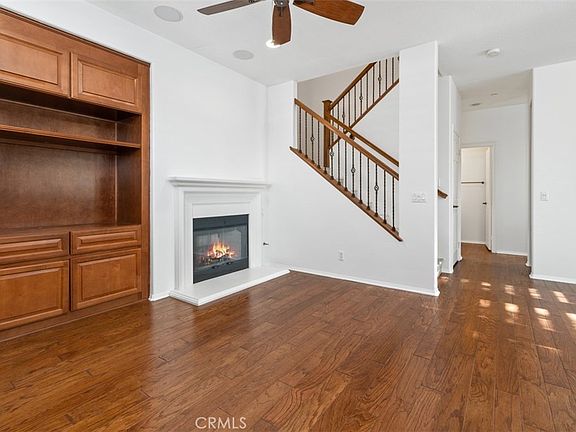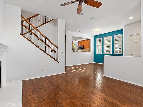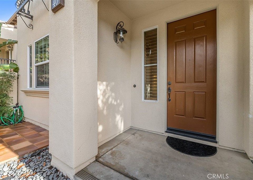 Located in the desirable Trailing Vine community, this bright end-unit former model townhome offers 3 bedrooms, 2.5 baths, and tasteful upgrades throughout. Enter through a private gated courtyard into a home featuring hardwood flooring on the first floor and brand-new vinyl upstairs. The living room includes a cozy fireplace, recessed lighting and plantation shutters, while the light-filled kitchen boasts stainless steel appliances and a large corner window. A stylish half bath with pedestal sink and a separate laundry area complete the main level. Upstairs offers a spacious loft/office with built-in desk, two secondary bedrooms, and a primary suite with mirrored wardrobe and en suite bath. Additional features include a two-car attached garage, Conveniently located near the 5 Freeway, grocery stores such as Trader Joe's, Ralphs, and Mitsuwa, popular restaurants, and top-rated Tustin Unified schools including Hicks Canyon Elementary, Orchard Hills Middle, and Beckman High. Refrigerator, washer and dryer included.