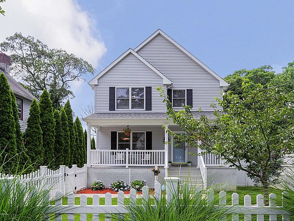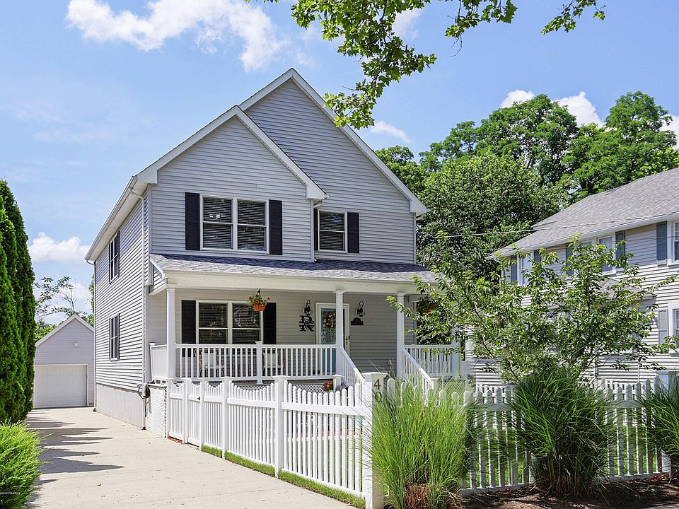 Newer construction Colonial offering 3 bedrooms & 2.5 baths w/ open floor plan. Great rocking chair front porch welcomes you, large fenced yard & over sized insulated detached garage w/ 6ft. high loft storage. Master Bedroom w/ 2 walk in closets & master bath. Bonus space currently being used as an office on 2nd fl. Recent upgrades include new HVAC, hardwood floors throughout, smart home lighting system, irrigation system, new kitchen island, wine hutch & new quartz counters. Patio & pergola makes the most out of your outdoor living space. An additional 1000+ square foot basement w/ 8ft. ceilings provides more possibilities. Great curb appeal & walking distance to train, shops and restaurants. Close to parkway, bus, beach & just 7 miles to high speed ferry.