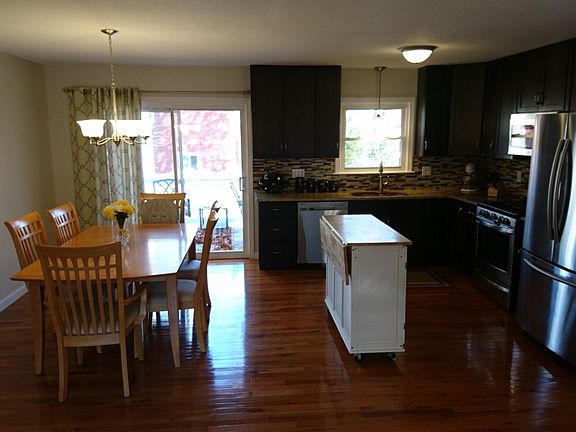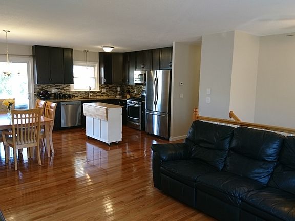 Move-in ready split level home. Granite countertops, new cabinets and stainless steel appliances highlight the open kitchen. You'll find hardwood floors throughout the upper level, which includes 3 bedrooms and a large updated full bath with tile shower and double sink granite vanity. A sliding glass door in the dining area leads to an updated deck overseeing the generous back and side yard. The lower level has a large finished room with wood stove. All major updates have been completed within the past 3 years, including a new furnace, vinyl siding and roof.