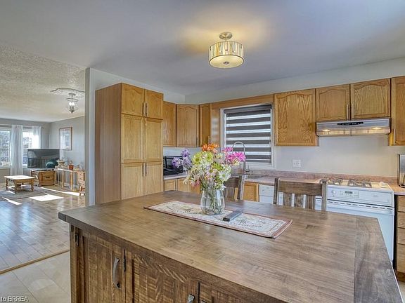 This classic raised bungalow sits in the sought-after community of West Brant! The home was quality built in 2000 by reputable local builder: Haggerty Homes. It offers over 1,100sqft above grade and a finished lower level as well. The airy and bright main floor adorns fresh neutral decor, stylish hardwood floors, and an open concept floor plan. The kitchen is located at the back of the home and has patio doors leading to the rear fenced grounds by a unique wagon-wheeled staircase. It boasts ample cabinets and counter space and even has a REAL lazy-Susan and a handy pantry with pull-out drawers. All major appliances are included as well as the gorgeous movable island (with 2 matching stools) that was custom built by the Mennonites and provides LOTS more storage space! The combined living & dining room is currently set up as a double living room. The massive master suite is flooded with natural sunlight through its 2 windows. Another well-sized bedroom and a full 4-pc bath complete the main living space. Head downstairs and be impressed by the HUGE family room = the perfect space for entertaining quests and playing pool on the stunning mahogany table. There is a 3-pc bath highlighted by a soothing whirlpool tub. With minor effort, the lower level conveniently provides space for 2 additional bedrooms if needed. The over-sized garage offers oodles of storage space with its many shelving units! The furnace and shingles have been replaced and the water heater & water softener are included. This one-owner home is well maintained, exudes 'pride of ownership', and sits on a quiet street in a family-friendly neighbourhood. It is walking distance to schools, parks, trails, city transit route and all amenities are nearby. It is LOADED with value!!! Definitely do not delay! Call to book your viewing today!