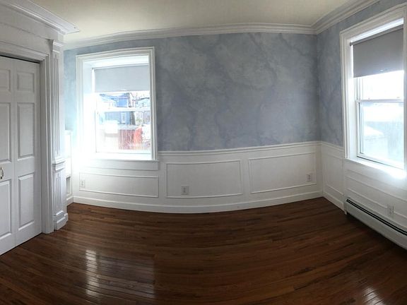 Beautifully renovated home with new flooring, repainted rooms, custom molding and spacious first floor. 2nd LEVEL: 2 bedrooms with closets and new oak hardwood floors, one full bathroom with tub and a hand crafted walk-in closet with custom cabinetry. Master bedroom has custom decorative molding with plenty of space. 1st LEVEL: Gigantic living room and dining room with original hardwood floor, kitchen with custom oak cabinets, handcrafted molding, stainless steel fridge and new tile flooring. 1 small bedroom with custom paneling and ceilings. Laundry room with washer and drier. BASEMENT: Plenty of storage with new crawl space PARKING: Driveway More pictures to follow $1200 rent and $1200 security. Additional $200 deposit and $25/month for a pet. Our tenants are responsible for all of their own utilities (including a quarterly water bill) and the maintenance of the small yard and snow removal. Applicants must prove an income of at least 2.5 times the monthly rent (i.e. $3000/month minimum) and have great references (including previous landlords). We also require an on-line credit report and for the monthly rent to be direct deposit.