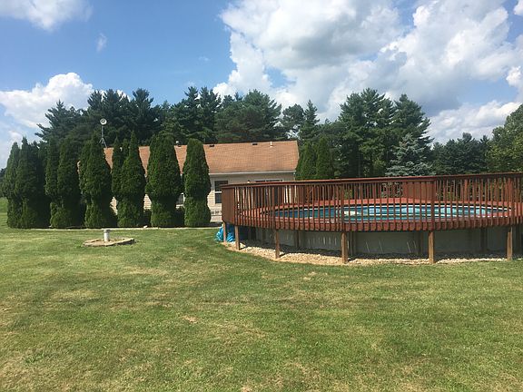 Enjoy quiet rural living and no rubbing elbows on this .50 acre lot in Harbour Cove Subdivision. There are wooded common areas, nice walking areas and a pond for fishing and yet you have the convenience of good access to the Interstate and shopping. Within walking distance of the Hang Out bar and grill & Public Acesss to Snow Lake!! This delightful ranch is attractively decorated. BRAND NEW KITCHEN!!! New custom wooden cabinets, new slate appliance, new countertops, and a sliding glass door were added in November, 2016!!! The seller has recently updated the kitchen, entry way, laundry room and guest bathroom with ceramic tile. ALL NEW GE SLATE APPLIANCES included!!!!! The entire house has been completely re carpeted . Each bedroom has a large walk-in closet. A new water softener was added in Feb. 2016. All kitchen appliances are includedThe back yard features a 32x16 patio and a 24 ft round pool with a wrap around deck for family fun at it’s best, and a new 12X16 shed still leaves a LARGE yard. Call (260)667-8765