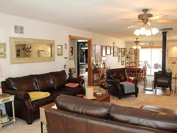 Enjoy this West Otter Lake one acre property with 4 bedrooms & 2 baths and nearly 100 feet of sandy lakefront. When you enter the home you can hear the quiet of a home with 6 inch insulated walls. And there are 16 patio doors and 4 skylights to fill this home with natural light. 2 heated sunrooms, one across lake side & the second Florida room overlooks a small serenity pond for your quiet moments. Enjoy the large living room with Theater sound & open concept to eat in kitchen Or spend your time in the 35x30 man cave. It has A/C, gas heat and a half bath. If your visitors arrive by RV there is covered parking with hookups for them. There is a 15x15 shed that holds plenty of wood to feed your fire ring overlooking the lake. the home includes 2 outdoor deck & attach garage also 200amp electric. Heated by Gas but also has electric and wood burning stove. Lot is partial wooded with a large lakeside yard. The rollout dock is already in waiting for your boat. You will find a list of recent updates attached in documents. Several items for sale outside of the sale!