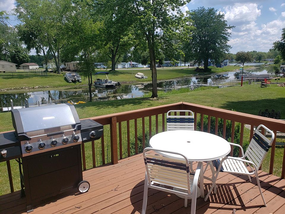 Newly renovated mobile home on quiet Barton Lake channel. Large 70 x 220 private lot provides plenty of room to play. Friendly neighbors, campfires, fishing, swimming, and boating on a calm, 10 mph lake. King bedroom, Queen bedroom, 3 Seasons room with double bed and twin bed, living room has a comfy couch: plenty of room to sleep 7 people. FULL kitchen AND laundry. Plenty of parking.
