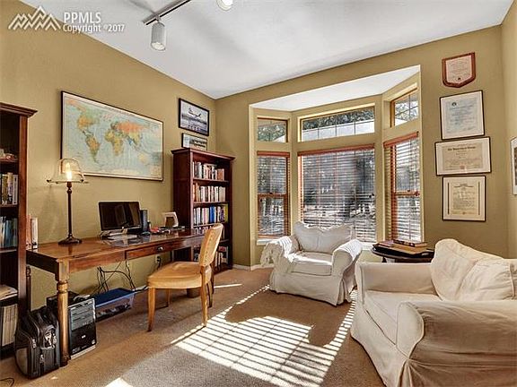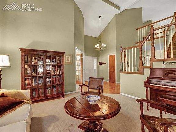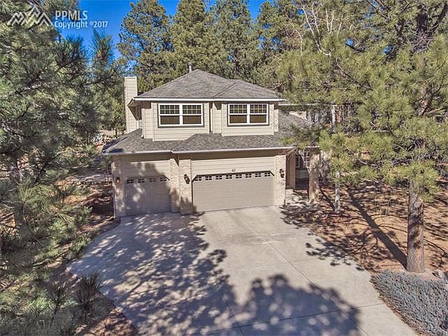 Will it be the FLOWING FLOORPLAN featuring 18ft CEILINGS or the 1/2 acre lot with soothing sounds of WHISPERING PINES that makes you FALL IN LOVE with this inviting home? Tall windows offer NATURAL LIGHT* Tasteful DECOR PAINT throughout* Art NICHE* Main lvl OFFICE w/ BAY WINDOW* TRAY CEILING in Dining Rm* GRANITE kitchen features DESK, EATING NOOK, & adjoining DECK with 2 FLAGSTONE PATIOS* VAULTED MASTER BR with 5pc BATH & jetted tub* All bathrms UPDATED* WET BAR in Rec Room* 2 STORAGE AREAS in bsmt* 1 mile to golf/pool * As you drive home, you feel the day's stresses peel way with each passing pine tree. Yes, this place is peaceful, and yet its just a few minute's drive to I-25. In the community are open areas, fishing ponds, "toboggan hill", & a community center (The Barn) maintained by the HOA. One can also join the Country Club at Woodmoor. The home's cul-de-sac location offers even more tranquility, with a nice mix of native trees & meadow on the 1/2 acre lot. Facing south provides for winter snowmelt on the driveway, and plenty of light in the interior. A covered entrance greets you as you enter to 18 ft. walls of windows. The two living areas on the main level provide plenty of options, & French doors open to an inviting office. A cozy nook overlooking the backyard pines offers informal dining, while the formal dining room can accommodate larger gatherings. Black granite & white cabinets grace the kitchen, and you're just a couple steps away from the deck & patios for summertime BBQs. Upstairs the Master suite is separated by a lofted hallway from the other 3 bedrooms. The Master bath has been updated with 18-inch tile on the floors & shower walls, & features oil-rubbed bronze fixtures. Similar updates were done to the upper bath with double sinks. If you wait this GEM of a home will be gone **** CALL TODAY for a private showing 719-229-5889.