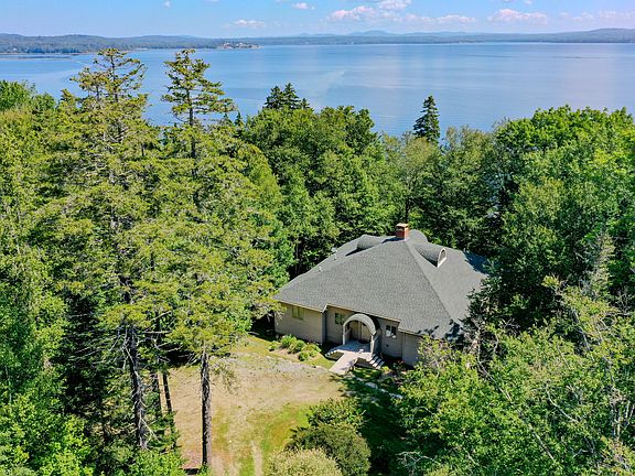 ''Romana'', a one of a kind waterfront masterpiece built to the highest standards. The design is based on a classic Roman concept of balance, using multiple squares connected by rectangles to create well sized rooms giving privacy and granting access to the Great Room with a Center fireplace/Russian stove combination. The Great Room features soaring 24' ceilings with 8'wide eyebrow dormers. The spacious kitchen is open to the dining/family room (12' x 25'), plenty of room for entertaining! Four spacious bedrooms and four full baths give you lots of space for guests. There is a large glassed in porch overlooking the water that opens from two bedrooms and the great room. This home is truly extraordinary and one of a kind. The land is wooded, quiet and private.