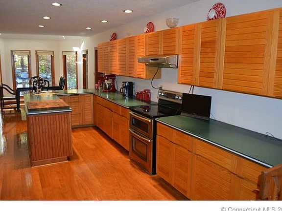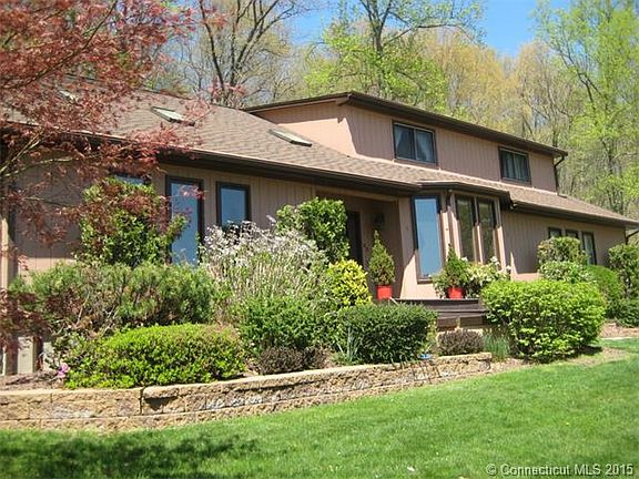 Location!!! Come back to nature in this beautiful contemporary colonial at end of a cul-de-sac near Cheshire's Mixville Pond. This truly beautiful home features kitchen with stainless appliances, recessed lighting, and a gorgeous breakfast nook overlooking your private 4 acre lot. This 4 bedroom, 3 baths home is also graced with a formal dining room, a balcony/reading room overlooking family room with elect fireplace, hardwood floors throughout the first floor, skylights, screened in porch, 3 car attached garage, central AC, and an expansive 2 decks across the back and side of the house. Full basement is partially finished. Master bedroom suite features doors to a private deck, and 2 other bedrooms have balconies. Views from the oversized windows are stunning! A must see!