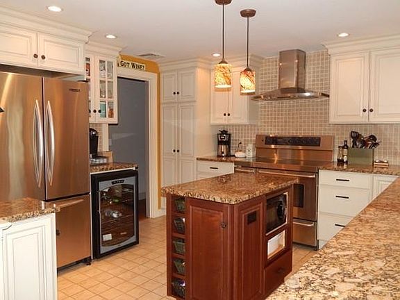 - Kit Dscrp: Countertops - Stone/Granite/Solid, Cabinets - Upgraded, Flooring - Stone/Ceramic Tile, Kitchen Island, Stainless Steel Appliances, Wine Chiller, Wainscoting, Peninsula