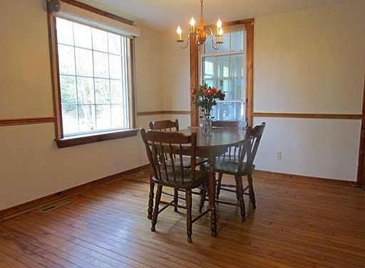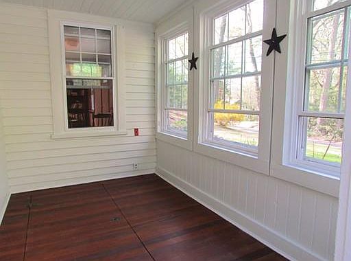 Spacious, updated 1510 sf home on 1.51 acres, freshly painted inside and out. 2 bedrooms, 2 full baths, 1st floor laundry, open living/dining, 3 season sunroom, enclosed front porch. The huge 2nd living room/family has a pellet stove, vaulted ceiling and walk-in closet, and can easily be converted into a spectacular master bedroom. The updated/remodeled kitchen with stainless appliances has a walk-in pantry and opens out to a large 3 season sunroom. Newer insulated windows let the sunshine in and keep the cold air out. The yard has a private fenced area perfect for pets, plus penty of room for gardens and play. Imagine yourself enjoying al fresco dining on the deck or morning coffee in the sunroom, which is large enough for a dinner party. Easy highway access. This is a wonderful, well maintained home on a lovely tree lined street.