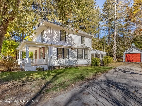 Just a stone's throw away from Woodstock's vibrant cultural scene, this charming Arts and Crafts home blends original character with modern updates. A comprehensive renovation includes a brand-new septic and heating system, updated kitchen and baths, new flooring, lighting, paint, and enhanced insulation. Original stained-glass windows remain as artistic focal points, honoring the home's heritage. The main level features an inviting eat-in nook and a formal dining room that flows from the kitchen and living room—a perfect layout for both everyday living and entertaining. A convenient half bath completes the first floor. Upstairs, you'll find three bedrooms—including one with a walk-in closet—along with a full bath. The attic provides flexible space, ideal for a studio, home office, or creative retreat. Outdoor living is equally appealing, with a welcoming front porch, an enclosed back porch, and a landscaped, level yard. The detached garage—with electric—adds versatility for use as a workshop or additional storage. This restored gem offers a rare opportunity to live where creativity, history, and modern comfort converge—in the heart of Woodstock.