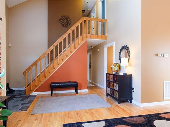 Unique and spacious contemporary home in a beautiful neighborhood and be "Wowed!" by the soaring ceiling and space! Look out to a lovely terraced backyard with professionally landscaped gorgeous stone walls and staircase perfect for the avid gardener. The main level features a living room with vaulted ceiling, formal dining room, remodeled kitchen with stainless steel appliances and sunny breakfast room surrounded by windows, and a cozy family room with fireplace and sliding door to backyard. Upstairs you'll find a master suite with huge walk-in closet and a spacious master bath. Another full bath and two bedrooms complete the second floor. Other features include hardwood floors, a new roof, new gas furnace, newer central a/c, and a spacious two car garage with high ceilings. Welcome Home!