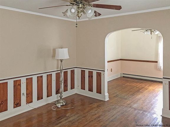 This charming 7 room home has two bedrooms. Each bedroom has an additional room attached. The ground floor bedroom has a room behind that could be a perfect nursery, office or large dressing room. The upstairs bedroom has a very spacious room in front that could be used as a playroom or den. There is a cute dining room that sits between the living room and kitchen which was updated a few years ago with new wood cabinets, a beautiful wood counter top, new stove and refrigerator. The back of the house features a cover porch which opens up into a large grass filled yard. This property has been well maintained and has a new roof (2 years old), new windows (within last 5 years) and a new boiler (2 years old).