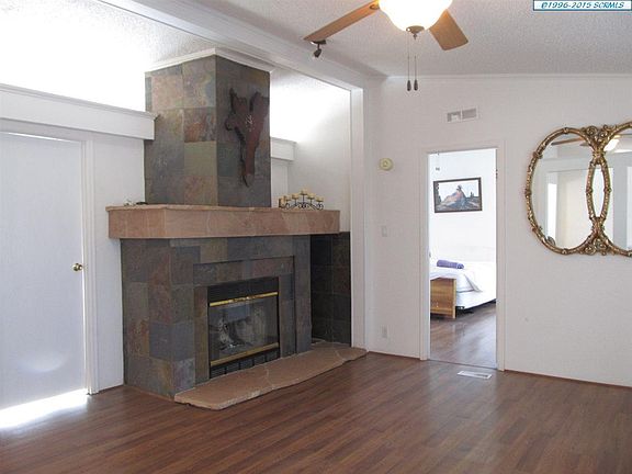 Very nice! Split plan with Master suite and a separate office room that also opens to the living room on one end, and 3 additional bedrooms on the other end. Marble garden tub and separate shower in master bath. Formal dining area, plus another nice-sized eating area--an extension of the kitchen. The kitchen has lots of storage and will be a pleasure for the chef. Fireplace in the living room with cathedral ceilings The acreage is flat and totally usuable. No covenants, so animals are welcomed.