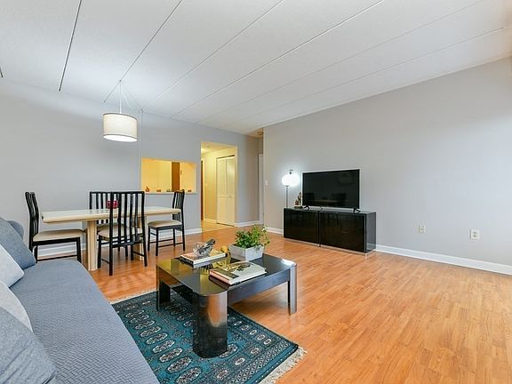 Sunny, spacious corner one bedroom unit, with 1 & 1/2 baths in the sought after Seville. This first floor home features an open living/dining area with central air, engineered hardwood floors, a spacious galley kitchen, a large master bedroom with en suite bath, a walk in closet, & 2 additional closets, and in unit laundry. The renovated private patio is accessed from both the bedroom and the living room. The unit has additional storage, 1 deeded parking space, in ground swimming pool, & low condo fees. Stoneham is a commuter's dream with close proximity to routes I-93, I-95 & bus to Oak Grove station. This central location is close to fine restaurants, shopping and The Stoneham Theatre.