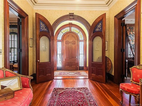 The Village Mansion: Built in 1855 and located in a historic district as the main residence for one of the town's mill owners, this 5856 SF Italianate home is situated on 2.56 village acres and has seen much attention in the past several years. Featuring 6 bedrooms and 4-1/2 baths with soaring 12' ceilings, original black walnut trim details and doors are everywhere along with red pine floors and mercury glass door knobs. There are now 9 fireplaces most with their own unique Italian marble surrounds. Current owners have installed new thermopane windows and done a great deal of renovation work to bring this grand dame back to its original grandeur. There is a stucco outbuilding that could be a studio, guest house or at home office. Stone courtyard, a lovely porch and the grandest of chicken coops further enhance this fabulous property. Formal, grand and bygone days