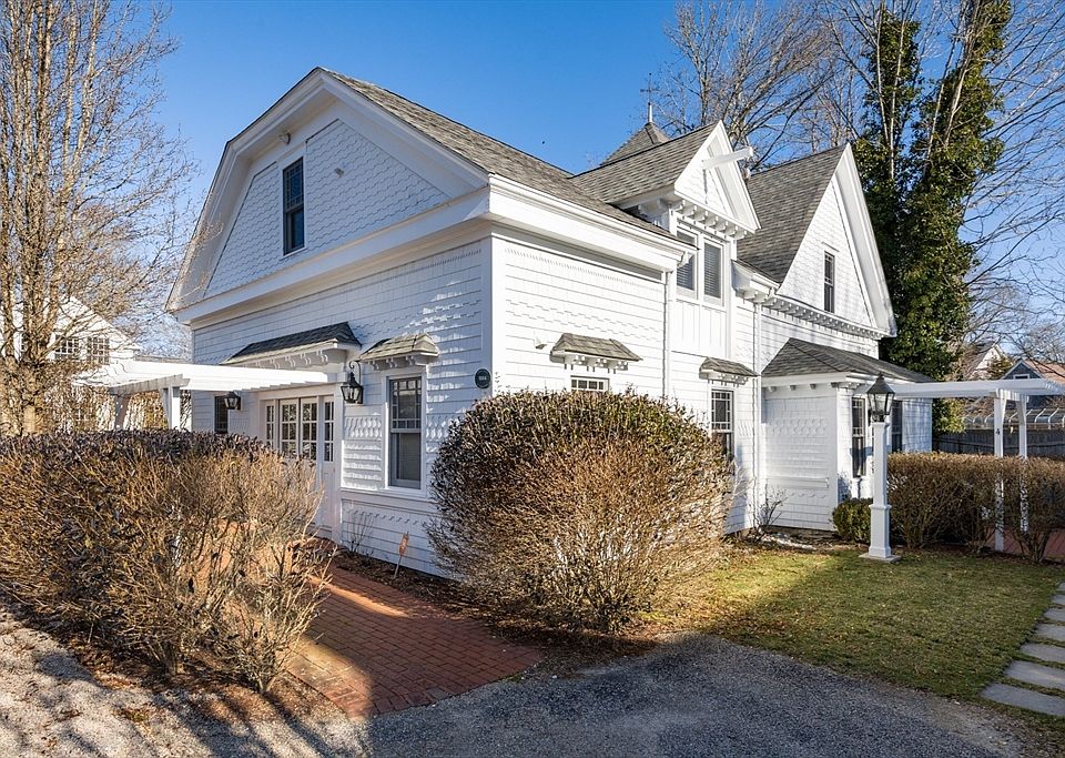 This meticulously renovated antique carriage house near Falmouth Village Green blends historic charm with modern comfort. Featuring 2 beds and 2 baths, it offers single-floor living with an open-concept layout, including a spacious living room with a gas fireplace, a well-equipped kitchen with stainless steel appliances and granite countertops, and a cozy dining area. The primary suite boasts a second gas fireplace, a luxurious private bath with a walk-in shower, double sink vanity, and bathtub. Finishing off the unit is an additional bedroom and another full bathroom. Outside, enjoy manicured grounds with rose bushes, a private patio, and a white picket fence. Situated in Falmouth's Historic District, residents have easy access to downtown shops and restaurants. Amenities include ample storage, two parking spaces, and shared visitor parking.