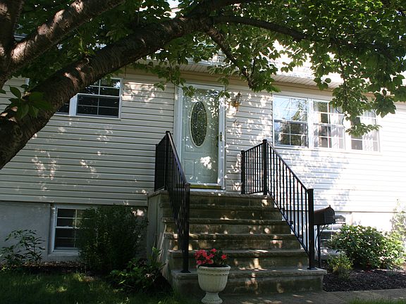 Great Home. Recently remodeled. Open flr design, granite counters, kitchen island, tile flrs, newer appliances. Spacious basement, storage/workshop areas. High efficiency TRANE HVAC. Sizeable fenced-in backyard w/shed. 1 car carport. Quiet park like setting facing undeveloped land. Walkable to shops, parks, NYC transport.