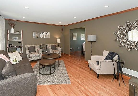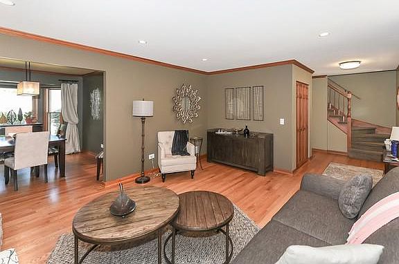 Simply beautiful, this meticulously maintained 3 bedroom, 2.1 bath home is nestled on a quiet cul-de-sac in desirable Foxmoor. The front paver walkway welcomes you into the stylish and warm interior-think Potterybarn! The hardwood floors flow throughout the first floor adding to a wonderful sense of continuity. The eat-in kitchen amenities include sliding doors and windows with built-in blinds (Pella triple panes throughout too!) that lead to the newly painted back deck. The adjacent family room boasts a cozy and easy gas log fireplace and is flanked by built-in bookcases. Formal living and dining rooms, convenient laundry room with a trendy barn door entry and powder room rounds out the first floor. The spacious master suite features a vaulted ceiling, walk in and wall closets plus a master bathroom with double sink vanity. The other two bedrooms are both nicely sized and share a hall bath. The basement adds additional living space with a rec room/exercise area, built-in bar and workroom with space left over for storage. New furnace, and water heater in 2019, basement re-insulated in 2020. Professionally landscaped as well as True Green lawn care plan with aeration and seeding pre-paid for the year. Close to parks, elementary school, restaurants, and the Fox River Grove Metra Station.