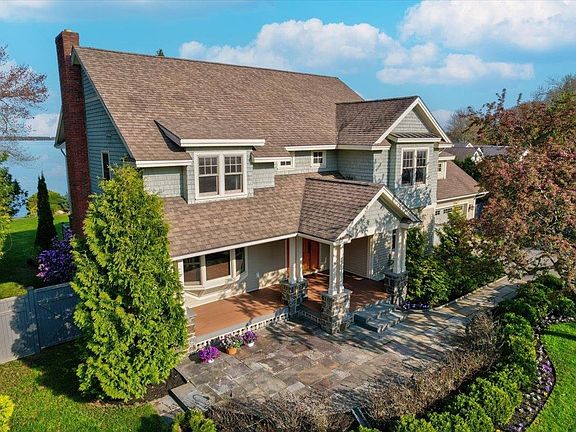 Beautiful Arts and Crafts home on western facing Maquam Shore. Immaculate property with so many fine touches. Feel a sense of peace and ease the moment you enter the home into the open entryway with grand stairway. The quarter-sawn white oak used throughout the house, including the hand-picked solid slab doors, flooring, all trim and cabinetry, which is in nearly every room, lends a consistency of quality rarely seen in modern homes. The spacious kitchen has room for all your chef tools and family members and looks out over the rear deck and lake. Large center island. Granite and marble countertops, of course. Hubbardton Forge light fixtures, Vermont’s finest. Dining area with built-in hutch and living room with wood-burning fireplace also open to rear deck. First floor also has an office and a powder room. The second floor has three large bedrooms with ample closets, built-in dressers and each their own bathroom, Central air conditioning and Levolor blinds. The finished basement offers plenty of space for family activities or quiet retreat. Enjoy the blue water views of Lake Champlain from the rear full-width composite deck which overlooks the manicured lawn, planting beds and stone patios. Take in the glorious sunsets from the lakeside Pergola. There is a convenient, easy access cement boat ramp and wide stairway that leads gently to the lake. Store your lake toys in possibly the cutest outbuilding you’ve seen. This is truly a sublime, inspiring property.
