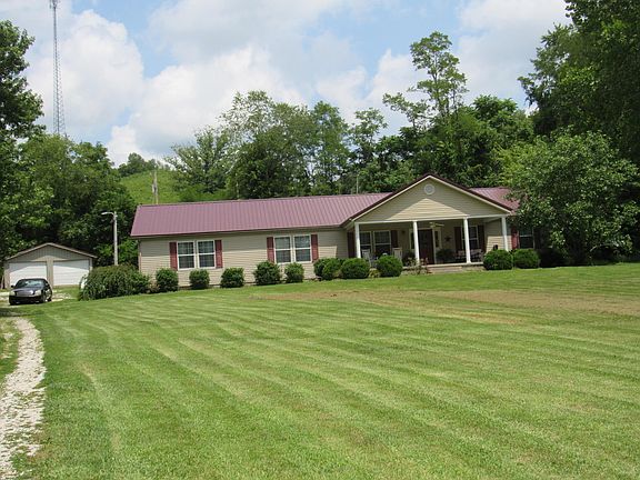 Home on one acre lot nestled in the hills of eastern Kentucky in the community of Hazel Green and Historic Hazel Green Academy. This customized Palm Harbor manufactured home with many upgrades, large living room, kitchen and dining area. Spacious primary bedroom with bath has jetted tub, separate shower stall, two additional bedrooms and one and half baths. There is a den, utility room and sunroom. Continuous block foundation, covered front porch, detached two car garage and storage building. Great location near Red River only ten miles from Campton and Mountain Parkway.