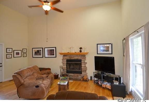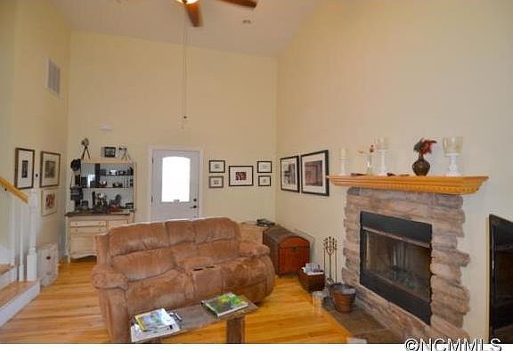 Great Fairview location. 5 minutes to Asheville. Open floor plan with vaulted ceilings, wood floors throughout the main level. Gourmet kitchen with granite counter tops and stainless steel appliances. Conveniently located laundry on the second floor. Wooded level lot with pond view and fenced yard.