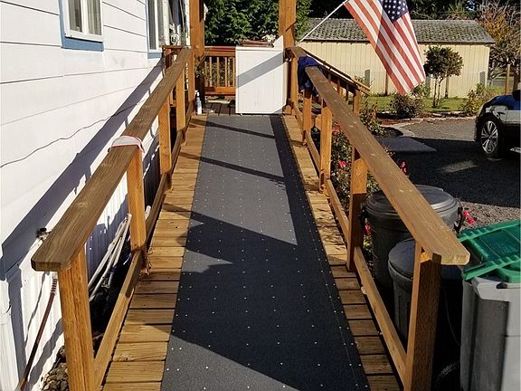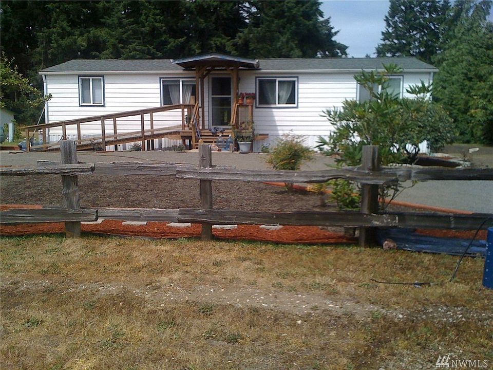 Artistically landscaped & recently updated w/newer appliances, carpeting, main bathroom shower/tub enclosure & paint, this split floor plan, three bedroom, two full bath home is move-in ready. Large, level backyard provides ample space to garden, install outbuildings, etc. Close to library, schools, grocery, gas & more. On bus route. 1979 double wide MH, updated w/new windows, kitchen cabinets/counters was purchased from a MH dealer in the Gorst/Bremerton area & installed on parcel in 2007.
