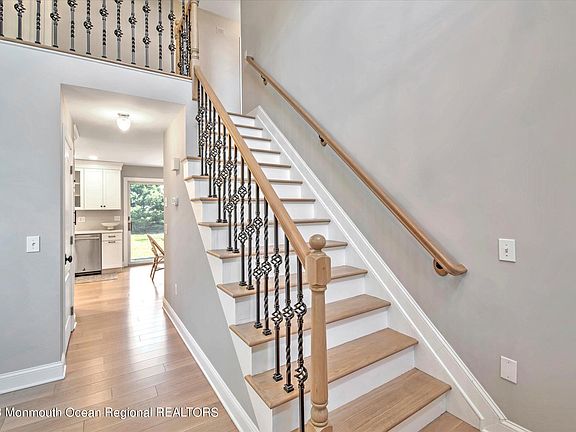 This Shore Colonial in White Oak Estates has been completely renovated & upgraded and is move in ready. The Formal Living Rm feels bright & open with it's soaring, vaulted ceiling. The gourmet kitchen features a stainless JennAir appliance package, farm sink, shaker cabinetry, quartz counters, pantry and butler pantry w/ wine fridge, all adjacent to the cozy Family Room, drenched with light. The Primary Bedroom is a decorators dream boasting cathedral ceiling, trending trad panel, sliding barn door to walk in closet and luxurious private bath w/ oversized shower, double sink and marble counters. The full finished basement is a perfect retreat for the entire family. The level, fully fenced yard awaits your barbecues and summer entertaining! Close to beaches and shopping, this home is it!