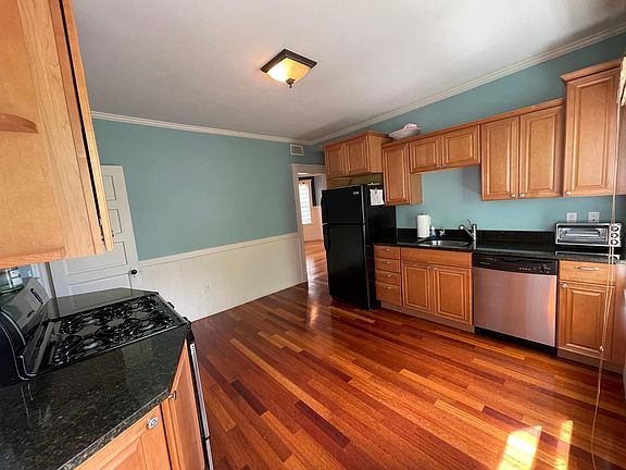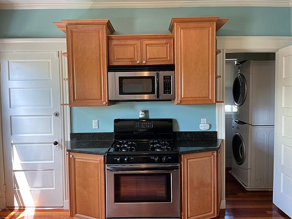 Top floor penthouse apartment available August 1st! High ceilings and bay windows allow natural light to pour in at all angles. There are HW floors throughout, central air, stainless steel appliances, granite countertops, walk in pantry/laundry room with washer and dryer, and a modern bath. Two large bedrooms on opposite sides of the apartment allow for privacy and a formal living room and dining room give you plenty of space for entertaining. Two private outdoor spaces and an off-street parking spot really make this the ultimate rental! Great location. Quick access to the highway, public transportation, and local shops and grocery stores. Pets considered on case by case basis. *photos of the dining room painted red are older photos used primarily to show the space. Dining room is currently painted blue. Landlord pays for water and sewer. Tenant pays for electric, gas, and cable/internet. One off-street parking space included in rent. Additional storage in basement. Pets considered. Must have good credit and income. 1st, security, and broker-fee required for move-in.