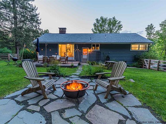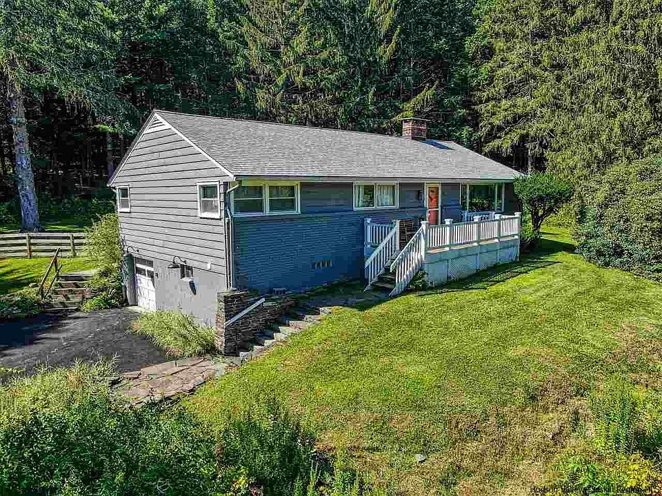 The best of 2 worlds: This newly renovated ranch house near the end of a pastoral cul-de-sac sits on 1.3 wooded acres offering privacy and spectacular sunset views, but it's also just 8 minutes by car from all the restaurants, shops and other attractions that have made Uptown Kingston's Stockade District one of the hottest neighborhoods in the Hudson Valley. Featuring a new kitchen, new roof, new central air-conditioning, plus one brand-new bathroom and a second one freshly renovated, the house has a chic but relaxed mid-century vibe that's move-in ready and perfect for settling in for the live-work long haul or spending low-maintenance weekends with friends or family. The large fenced backyard features a large deck just off the kitchen, perfect for entertaining or lounging. The partially finished walkout basement, with a third bathroom already roughed in, is ripe for expansion, but on your own timetable. Country life versus Uptown Kingston? No need for that dilemma. This property stylishly delivers both.
