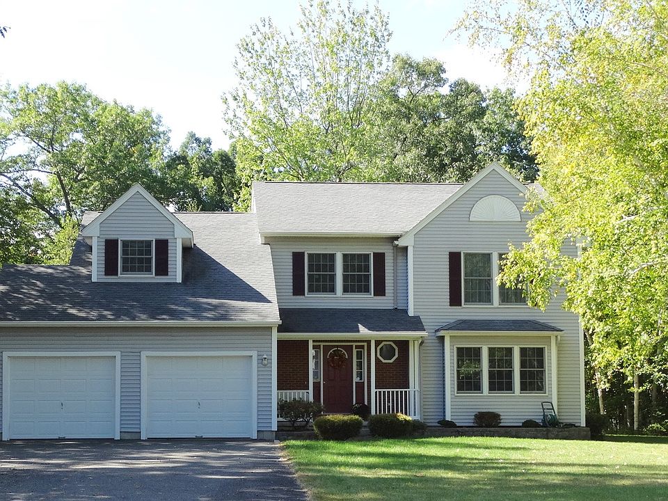 Beautiful Colonial home nestled on a cul de sac in one of Ludlow’s finest neighborhoods. The main level features a captivating two-story great room with skylights, French doors, and impressive fireplace. Sunny eat-in kitchen with oak cabinets, ceramic tile backsplash and flooring opens to a spacious deck and landscaped backyard. The living room-dining room combination offers gleaming hardwood and lots of windows to enjoy sunlit afternoons and beautiful sunsets. Powder room and mudroom with washer-dryer hookup and shower stall complete the first level. The second level features a Master bedroom ensuite with walk-in closet and charming exterior balcony. Master bath features skylight, whirlpool tub, separate shower, double sink vanity, and ceramic tile flooring. A full bath, 2 additional bedrooms, and a bonus room with interior balcony complete the second level.